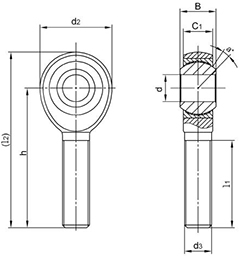 | d | D | C1 | d2 | d3 UNF-2B | h | l1 | l2 | 球直径. mm (inch) | ||||