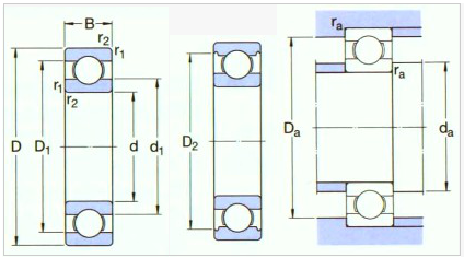 | With shiled | Open type | With seal VV | With seal DD | d | D | B | B1 | r(min) | Cr | Cor | Cr | Cor | Grease | Oil | da(min) | db(max) | Da(Max) | Db(min) | ra(max) | rb(max) | Open type | With shiled | |||